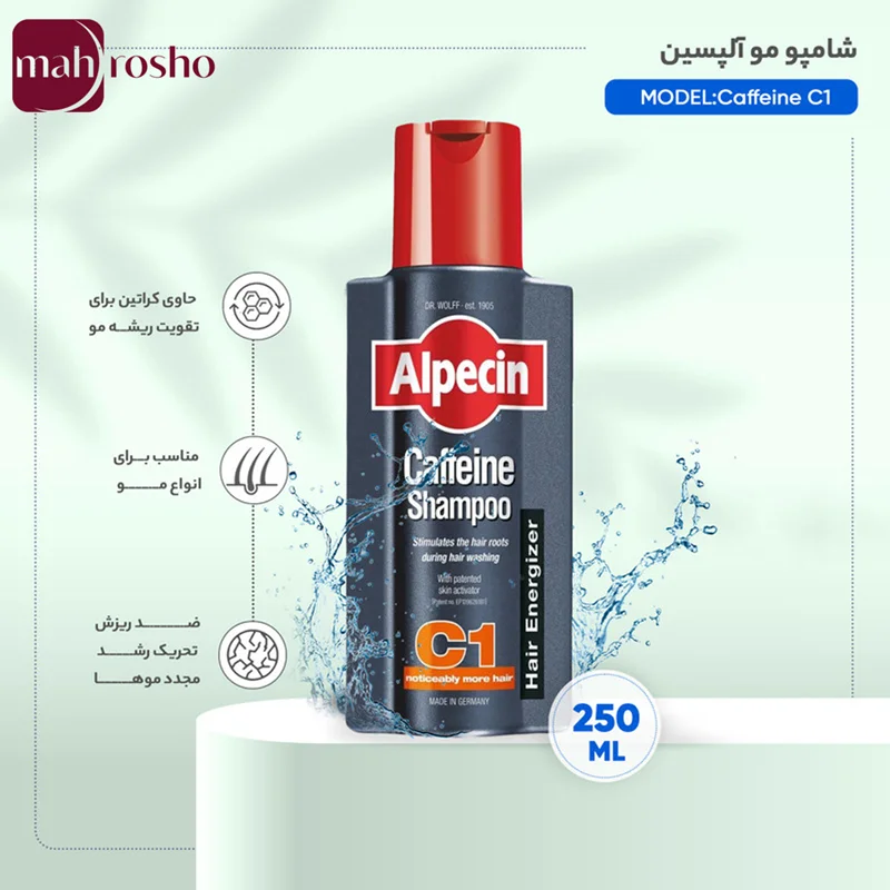 شامپو ضد ریزش و تقویت کننده حاوی کافئین Alpecin مدل C1، یک محصول مراقبت از مو است، برای افرادی که با مشکل ریزش مو مواجه هستند و میخواهند موهای خود را تقویت کنند مناسب است.
