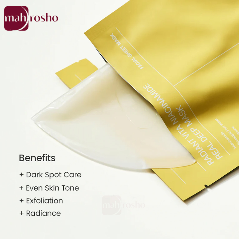 فرمولاسیون این محصول با محوریت نیاسینامید، گلوتاتیون و عصاره آناناس توسعه یافته است تا علاوه بر روشنسازی پوست، موجب بهبود بافت، افزایش درخشندگی و تأمین رطوبت عمیق شود. ترکیب چند لایه هیالورونیک اسید، مخمرهای تخمیری ارزشمند و پپتیدهای کلاژن، این ماسک را به گزینهای ایدهآل برای احیای پوست خسته و کمجان تبدیل کرده است.