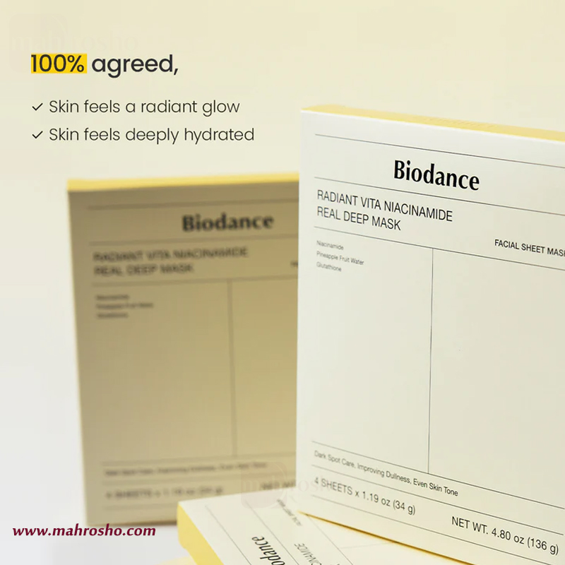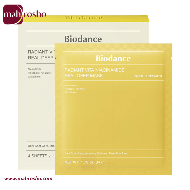 ماسک ورقه ای ضدلک و روشن کننده بایودنس مدل ویتا نیاسینامید: