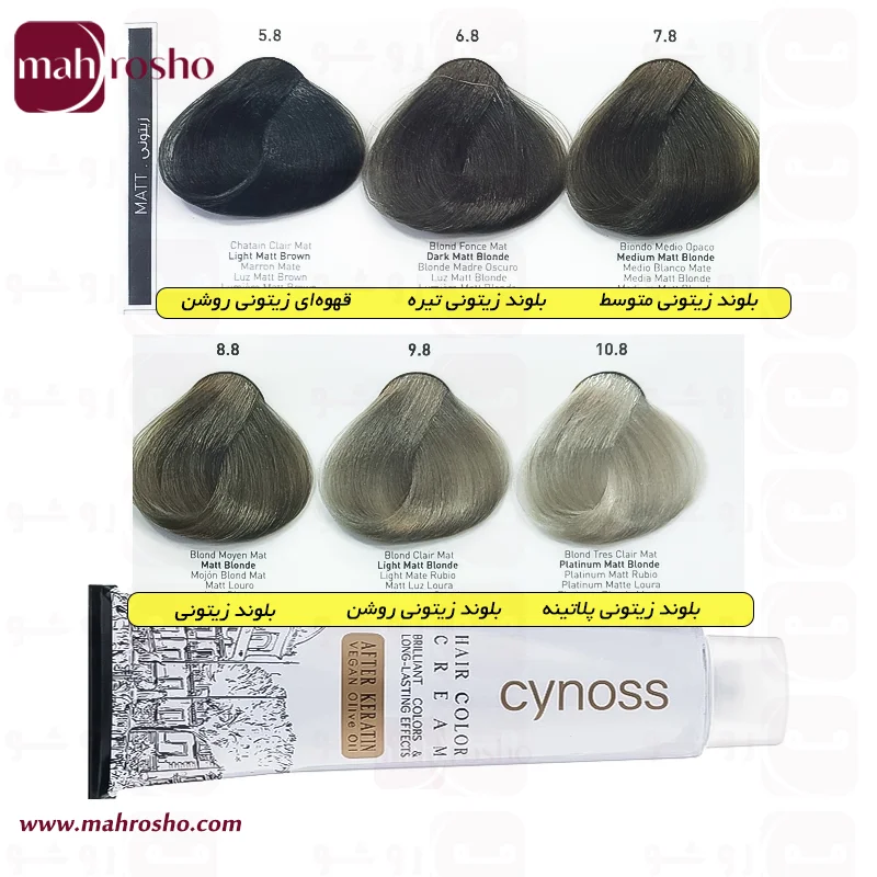 | بلوند زیتونی پلاتینه Platinum Matt Blonde | 10/8 | بلوند زیتونی متوسط Medium Matt Blonde | 7/8 |