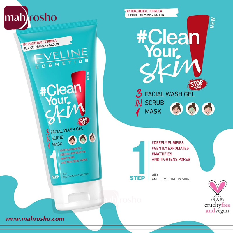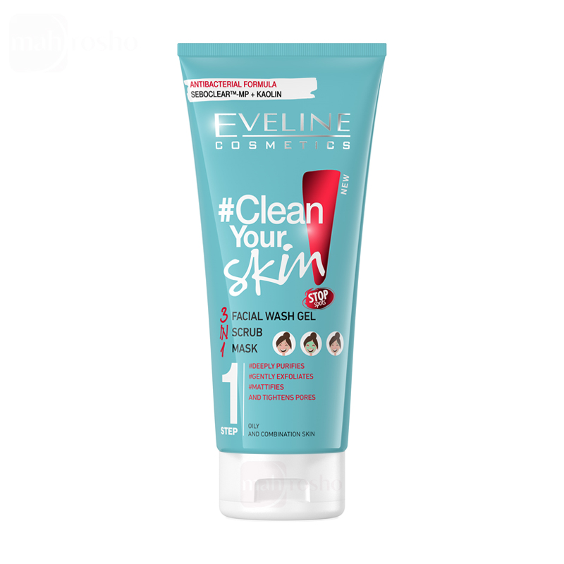 Eveline Clear Skin Cleanser , Scrub , Mask , Facial Wash Gel for Oily and Combination Skin , 200ml