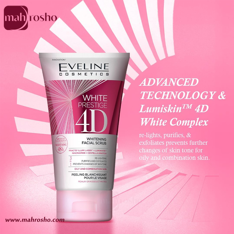مشخصات ژل اسکراب روشن کننده وایت پرستیژ 4 بعدی اولاین: