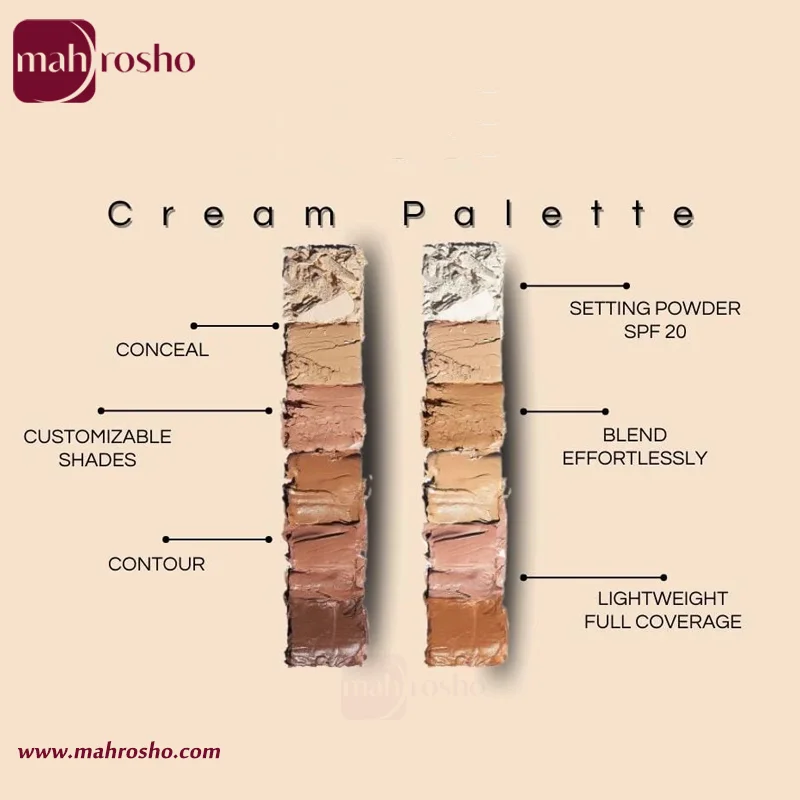 ترکیب منحصر به فرد ۶ رنگ در این پالت به شما اجازه میدهد تا بهسادگی رنگ پوست خود را یکدست کرده، کانتور دقیق و طبیعی انجام دهید و درخشش زیبایی به چهرهتان ببخشید. بافت کرمی و نرم این پالت روی پوست بهراحتی پخش میشود و بدون ایجاد سنگینی یا ماسیدگی، جلوهای صاف و ماندگار ایجاد میکند.