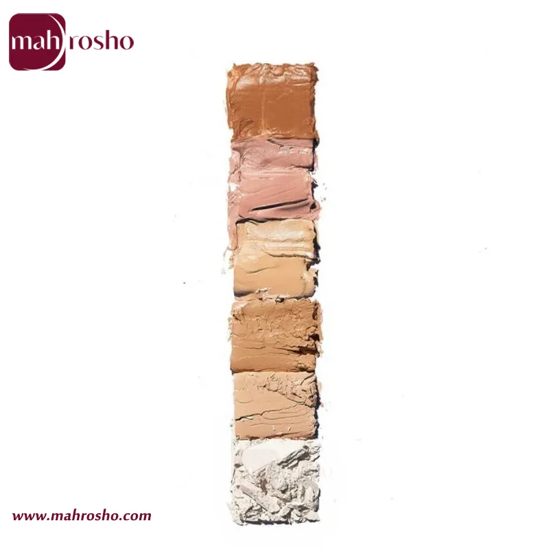 - پالت شامل ۶ رنگ کرمی متنوع است. رنگهای روشن برای هایلایت، رنگهای تیره برای کانتورینگ و اصلاح کنندهها برای خنثی کردن تیرگیها و تغییر رنگ پوست استفاده میشوند. با این پالت میتوانی پوستی صاف، طبیعی و بدون عیب داشته باشی.