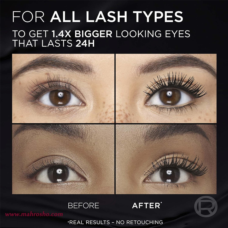 ترکیب انحصاری StretchFlex همراه با برس چندسطحی Multi-Level Bristle، هر تار مژه را از ریشه تا نوک پوشش می‌دهد و باعث ایجاد حجم بادبزنی، تفکیک فوق‌العاده و افزایش محسوس طول مژه می‌شود. نتیجه نهایی، چشمانی بازتر، درخشان‌تر و 1.4 برابر بزرگ‌تر است.