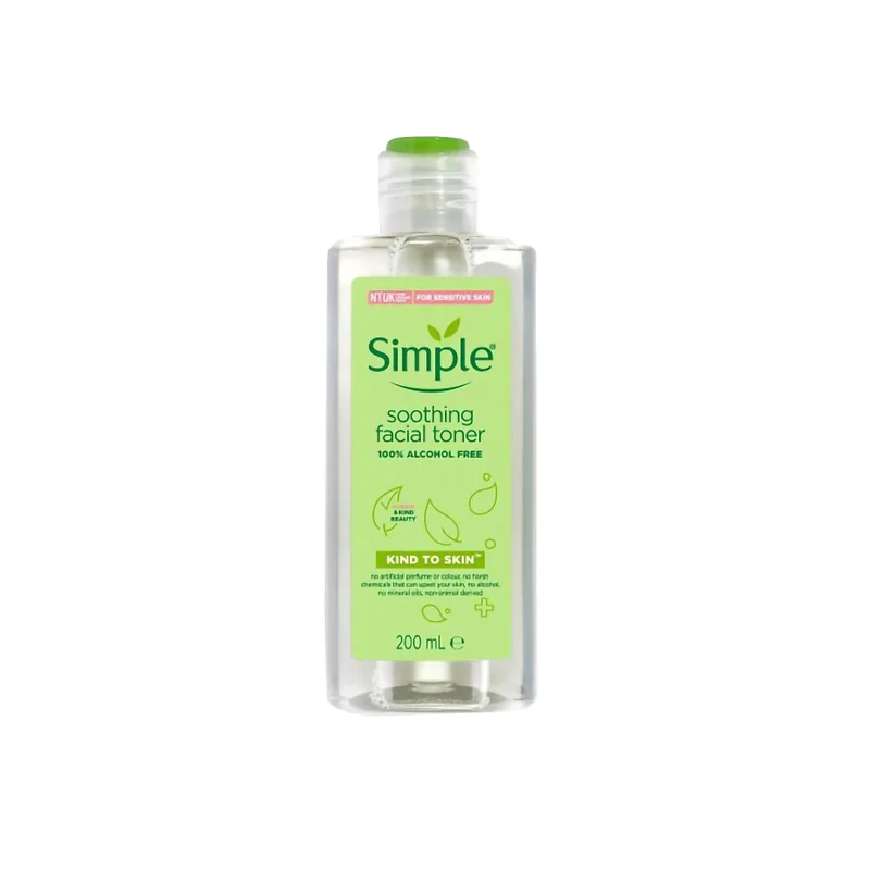 یک روتین عالی مراقبت از پوست دارای مراحل 1،2،3 است . در این مراحل مرحله دوم تونر است . تونرتسکین دهنده صورت سیمپل ( Simple )، دارای ترکیبی خاص از مواد نرم کننده و تقویت کننده پوست صورت است.تونر ساده و لطیف پوست سمپل ، دارای ترکیبات خاص از نرم کننده تقویت کننده پوست مانند Pro-Vitamin B5 ، بابونه و آلانتوئین است، این تونر ساده و لطیف با آبرسانی و تامین احتیاجات پوست، باعث خوش رنگ و شاداب شدن پوست می شود.