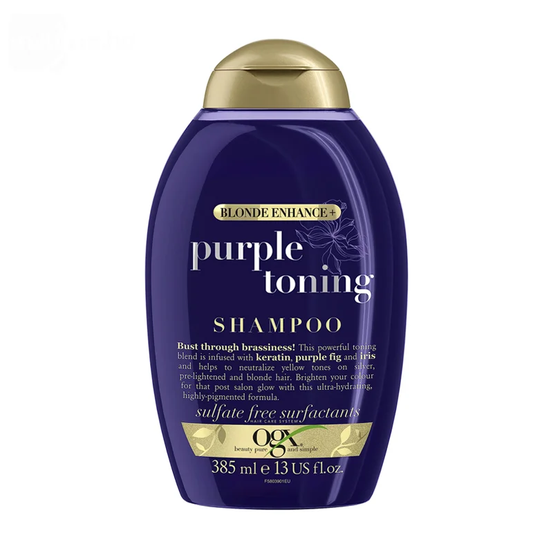 شامپو ضد زردی او جی ایکس (OGX Purple Toning Shampoo) یک شامپوی تخصصی و حرفهای برای مراقبت از موهای بلوند، هایلایت، نقرهای و دکلرهشده است. این محصول با فرمولاسیون فاقد سولفات و غنی از رنگدانههای بنفش فعال، بهطور مؤثر تناژ زرد و برنجی ناخواسته را از بین میبرد و در هر بار شست و شو، درخشندگی خنک و بلوندی شفاف به موها میبخشد.
