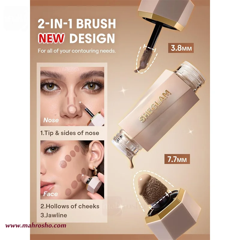 کانتور مایع دو سر شیگلم محصولی حرفه‌ای از برند محبوب SHEGLAM است که با طراحی دقیق و فرمولاسیون سبک خود، جلوه‌ای طبیعی و بی‌نقص بر روی پوست ایجاد می‌کند. این کانتور برای افرادی طراحی شده است که به دنبال چهره‌ای زاویه‌دار، خوش‌فرم و با جلوه‌ای یکدست هستند.