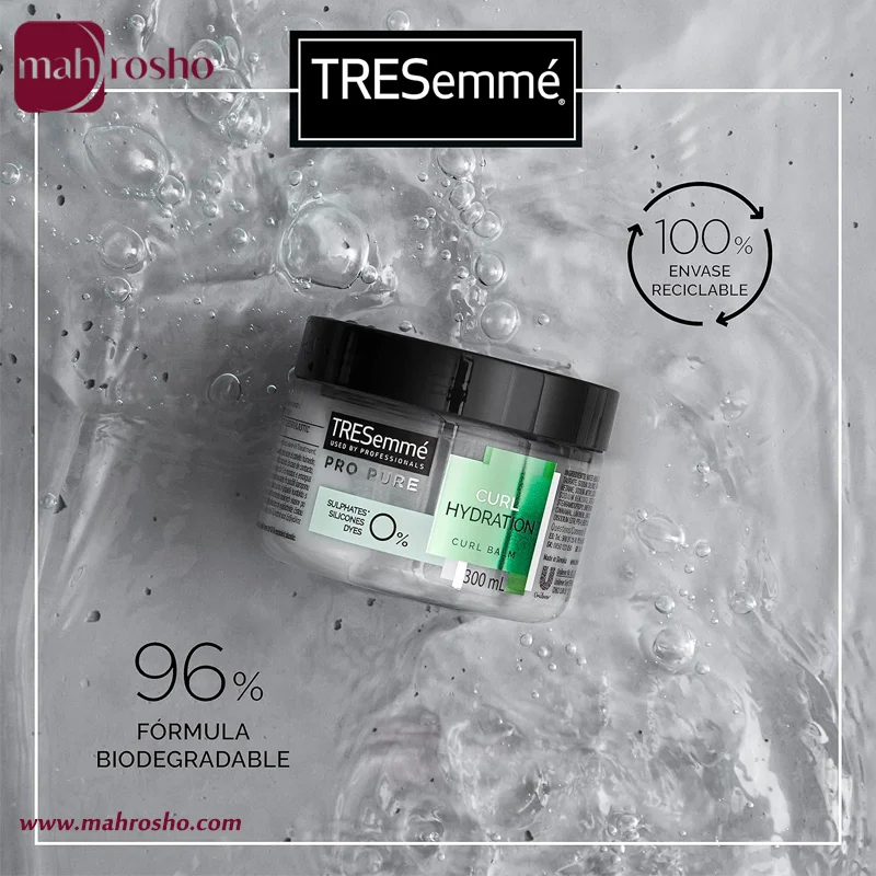 ماسک مو فر ترزمه TRESemme Pro Pure Curl Hydration Balm با فرمولی فاقد سولفات و غنی از روغن نارگیل طبیعی، رطوبت و تغذیه عمیقی به موهای فر میبخشد. این بالم، وز مو را کنترل کرده، فرها را خوش حالت و درخشان میکند و شانه پذیری مو را افزایش میدهد. با تأییدیه PETA و بسته بندی دوستدار محیط زیست، انتخابی مناسب برای موهای حساس و رنگ شده است. زیبایی و لطافت طبیعی موهای فر خود را تجربه کنید.